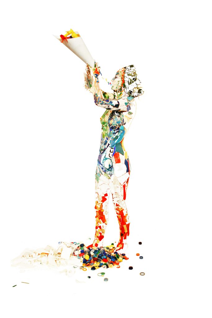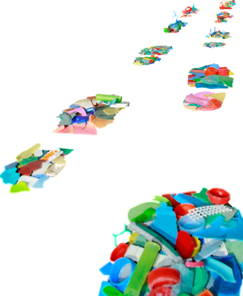 Die folgenden Kunstwerke setzen sich aus einer Vielzahl von Plastikteilen zusammen, die pro Bild variieren können und Größen von 2mm bis 200mm aufweisen. Jedes dieser Teile wurde sorgfältig aus verschiedenen Meeren gesammelt, transportiert, gereinigt und sortiert, was zu einem Prozess von über 12.000 Arbeitsschritten führt. Die verwendeten Materialien stammen aus dem Chinesischen Meer, dem Arabischen Golf, dem Atlantik, dem Mittelmeer, dem Roten Meer sowie der Nord- und Ostsee.